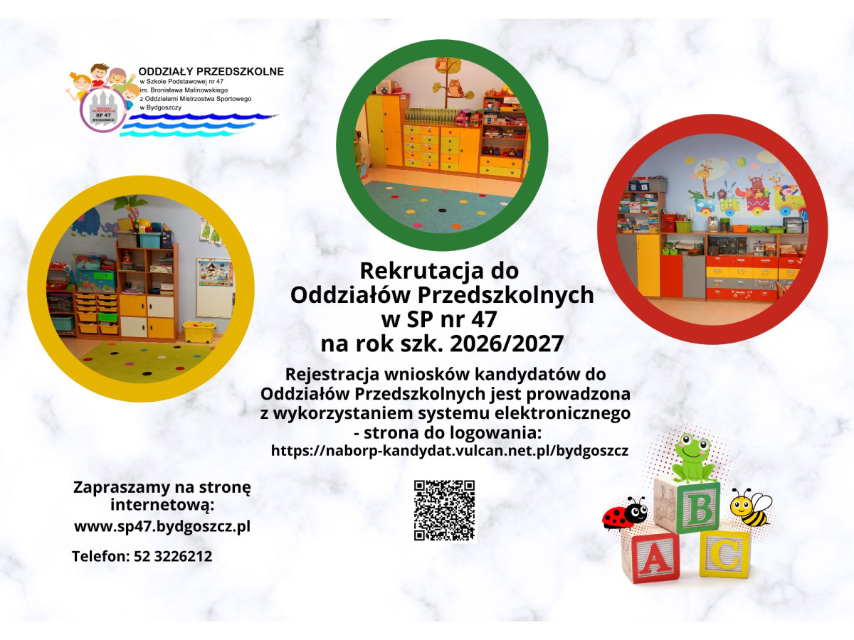 Dnia 09 marca 2026 r. o g. 8:00 rozpocznie się rekrutacja do przedszkoli i oddziałów przedszkolnych w szkołach podstawowych prowadzonych przez miasto Bydgoszcz na rok szkolny 2026/2027.